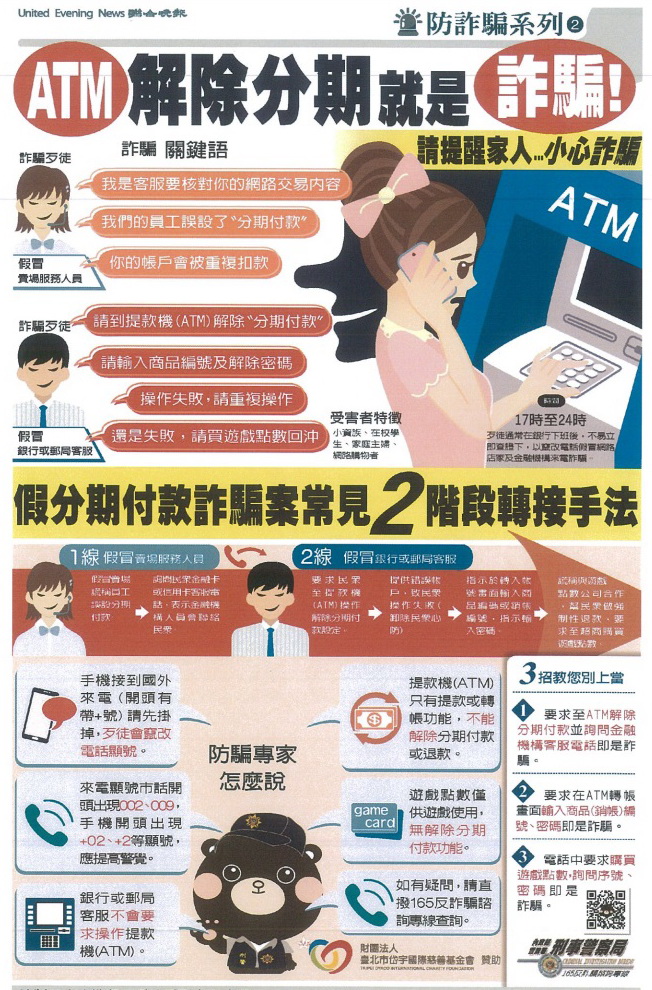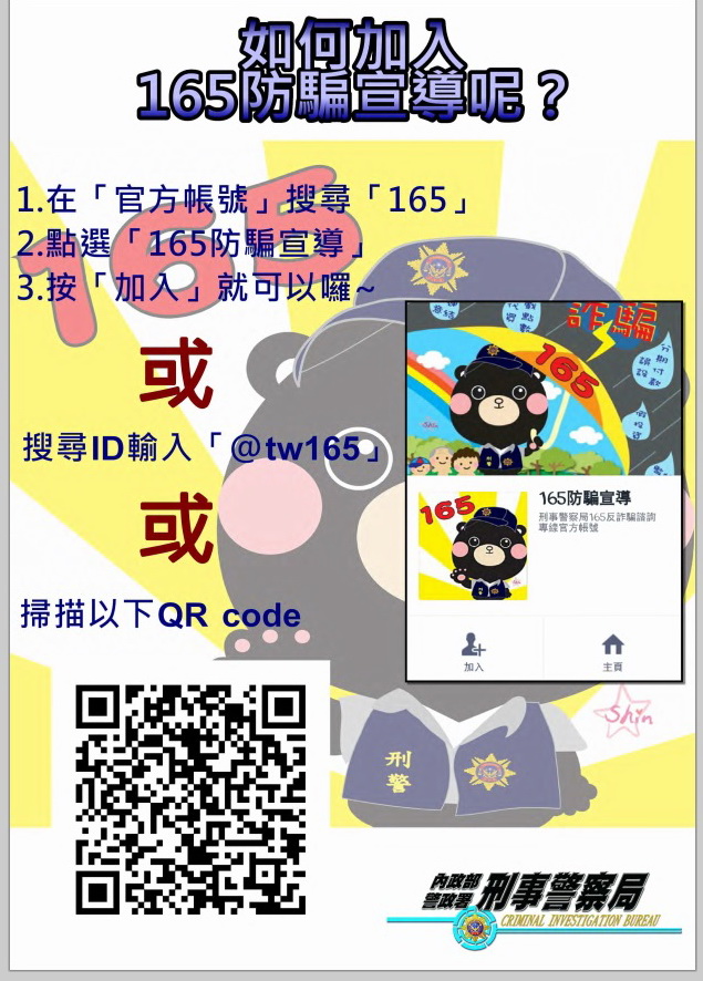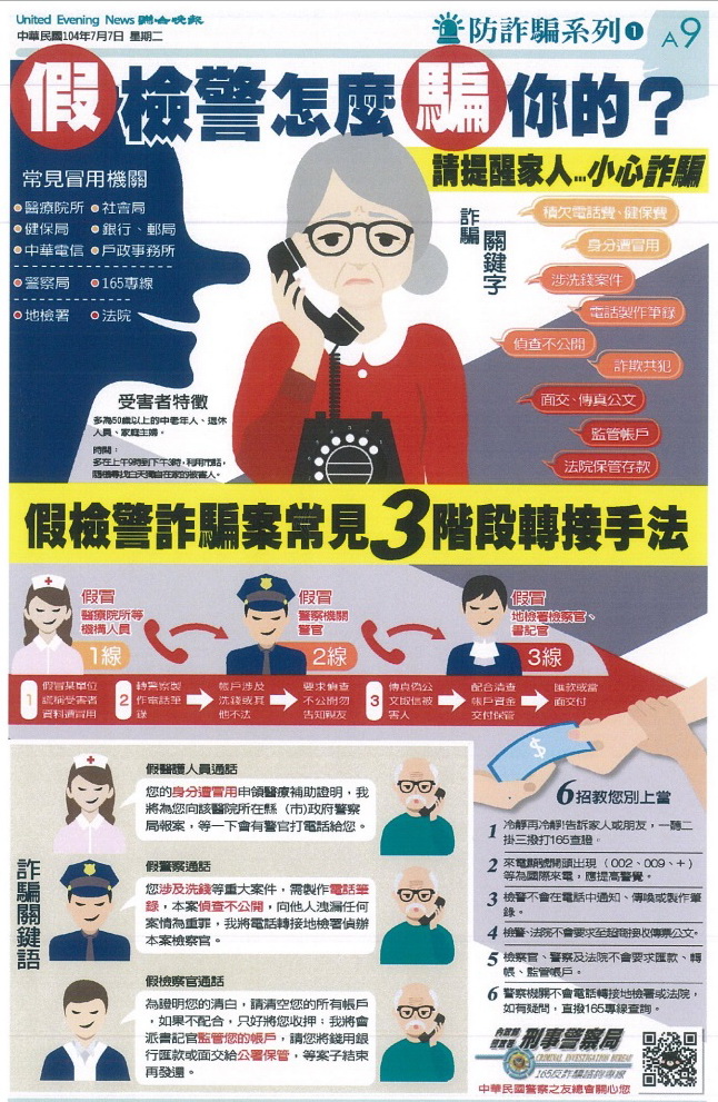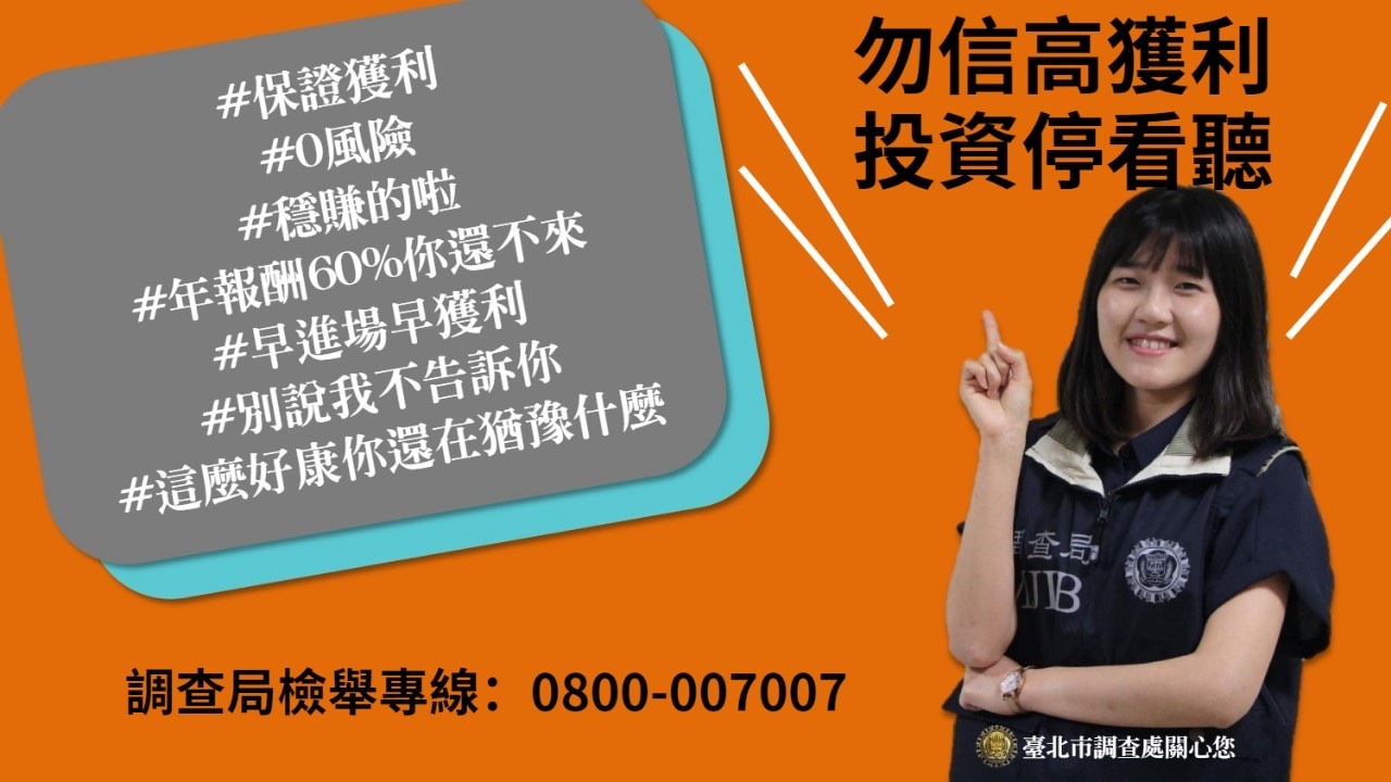 首頁 > 交易人保護 > 反詐騙專區 新聞稿與宣導 日期 主題 2025-12-09 內政部警政署製作反詐宣導影片 2025-09-11 元大期貨反詐騙宣導短影音 2025-09-03 法務部製作「守護正義不打烊」系列宣導影片 2025-08-05 法務部編製「這次不會再被騙了吧!」詐欺防制法治教育手冊,共2冊。 2025-07-11 金融總會製作之反詐騙宣導影片 2025-05-09 114年第一季網路廣告平臺業者 刊登違法投資廣告態樣 2025-05-05 「打詐新四法」迫使假名人投資詐騙消失 新詐欺「斜槓交友」偽冒金融公司、假冒金融經理 2025-05-02 櫃買中心反詐騙宣傳品 2025-04-02 法務部與「柴語錄」合製反詐騙宣導教材 2025-03-28 富邦期貨反詐騙宣導MV 2025-03-25 《期心期力 攜手防詐》期貨商反詐治理評鑑活動開跑 2025-03-12 內政部刑事警察局製作防詐宣導資料 2025-03-11 內政部刑事警察局製作防詐宣導資料 2024-12-23 當心詐騙! 證交所無經營任何虛擬貨幣業務及LINE、抖音帳號 2024-12-19 內政部警政署製作「反詐宣導影片連結一覽表」暨「反詐宣導月曆」 2024-12-19 數位發展部製作「反詐宣導影片連結」 2024-12-12 臺灣期貨交易所反詐騙宣導影片 2024-11-15 期貨公會響應打詐,呼籲期貨業者自發性參與暫停在非實名制社群平台投放廣告新聞稿 2024-11-05 刑事局優化打詐儀錶板功能 建構全民防詐意識 2024-11-04 不明中獎勿輕信,操作網銀要小心 123下一頁 媒體報導 ※下列新聞係摘錄自個媒體報導,僅提供與交易人作為參考,本公會不保證該新聞及資訊之真實性、正確性、完整性及即時性,且不負擔任何法律責任。交易人如有任何損害,請自行另依相關法律程序辦理以維護權益。 日期 主題 來源 2025-05-13 假金管會官員又來了!金管會提三招反制 工商時報 2024-12-25 金融帳戶預警七家試辦 防堵成效佳 擴及全體國銀 經濟日報 2024-12-25 反詐騙行動專區 優化上線 為使民眾清楚詐騙集團使用媒介及快速分辨,證券商通報時能勾選詐騙類型 工商時報 2024-12-25 證交所前進中原大學 宣導虛擬資產防詐 工商時報 2024-08-20 金融業阻詐 推特定簡訊代碼 聯合報 2024-08-19 櫃買董座遭冒名詐騙 勿上當 工商時報 2024-07-30 反詐騙聯防行動專區 8 月上線 工商時報 2024-03-21 詐團新招 冒名金管會行騙 經濟日報 2024-01-25 股民小心 詐團誘騙5大類型 聯合報 2023-11-17 假投顧真詐騙盛行 金管會示警 核准代碼為「H304011 證券投資顧問業」,查詢公司登記時要看清楚, 才不會上當 工商時報 2023-07-12 打詐 政府短碼簡訊平台9 月試辦 工商時報 2023-07-12 鼓勵銀行阻詐 金管會祭誘因 工商時報 2023-01-12 檢警抄「百老匯」洗錢水房 赫見前立委丈夫遭騙近6千萬 聯合報 2022-09-20 金管會反詐騙 宣示四大行動 經濟日報 2022-09-20 證交所 強化反金融詐騙 工商時報 2022-09-20 證交所暨證券期貨周邊機構宣示反制金融詐騙,冀有效提升防詐意識 MoneyDJ 2022-04-06 冒名詐騙再+1 國泰金董座急發聲籲別上當 工商時報 2021-10-25 警署掃假投資詐騙 斷黑幫不法金流 中國時報 2021-10-21 詐騙集團 冒名證交所行騙 經濟日報 2021-10-19 接獲檢舉達120件詐騙簡訊 Q3超車上半年 工商時報 2021-10-02 國泰金投資長、分析師全遭冒名詐騙 公司示警! ETtoday 2021-07-06 投資詐騙太猖獗 夏韻芬被盜用照片趕緊報案 鏡周刊 會員公司澄清聲明 ※下列澄清資訊係由會員公司提供,僅提供予交易人作為參考,本公會不保證該資訊之真實性、正確性、完整性及即時性,且不負擔任何法律責任。交易人如有任何損害,請自行另依相關法律程序辦理以維護權益。 日期 主題 2025-12-19 大昌期貨股份有限公司澄清聲明 2025-12-09 街口投信經理之系列指數股票型期貨信託基金澄清聲明 2025-11-27 凱基期貨股份有限公司澄清聲明 2025-10-14 群益期貨股份有限公司澄清聲明 2025-09-24 永豐期貨股份有限公司澄清聲明 2025-08-18 統一期貨股份有限公司澄清聲明 2025-07-22 凱基期貨股份有限公司澄清聲明 2025-07-10 永豐期貨股份有限公司澄清聲明 2025-07-04 凱基期貨股份有限公司澄清聲明 2025-06-18 華南期貨股份有限公司澄清聲明 2025-06-06 康和期貨股份有限公司澄清聲明 2025-05-23 元大期貨股份有限公司澄清聲明 2025-05-23 元大期貨股份有限公司澄清聲明 2025-05-07 元大期貨股份有限公司澄清聲明 2025-04-16 群益期貨股份有限公司澄清聲明 2025-04-16 群益期貨股份有限公司澄清聲明 2024-11-27 凱基期貨股份有限公司澄清聲明 2024-11-15 凱基期貨股份有限公司澄清聲明 2024-07-22 群益期貨股份有限公司澄清聲明 2024-05-07 群益期貨股份有限公司澄清聲明 123下一頁 其他宣導事項 合法期貨業者名單 查詢合法期貨業業務員(請備妥業務員公司名稱及姓名,以利查詢) 查詢專線:02-87737303#860、832 聯絡信箱:cnfa@futures.org.tw ※本專線僅提供查詢業務員姓名及任職公司是否於本公會有登記,民眾仍需留意收到簡訊或行銷活動等資訊之真實性。 金管會「1998金融服務專線」 宣導海報 12月27日經濟日報-反詐騙諮詢專線廣告 12月20日工商時報-反詐騙諮詢專線廣告 12月15日自由時報-反詐騙諮詢專線廣告 證券期貨反詐騙諮詢專線 如何加入165防騙宣導 假檢警怎麼騙你的 ATM解除分期就是詐騙 民眾報案之假網拍詐騙LINE ID 詐騙常用關鍵字 MJIB破解詐騙手法 勿信高獲利 投資停看聽 相關連結 金管會「金融詐騙防制宣導」 證期局「防範非法證券期貨業宣導專區」 國際投資警訊專區 證券公會「